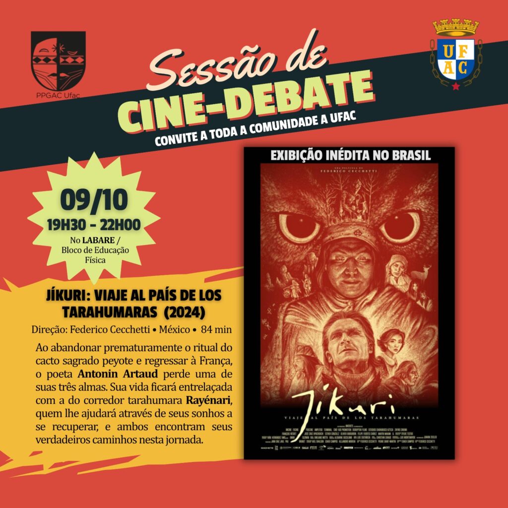No primeiro dia, 09/10, teremos o filme “Jíkuri: Viaje al país de los Tarahumaras” (2024), de direção de Federico Cecchetti. Filme mexicano, de 84 min, em idiomas Tarahumara e Francês; teremos legenda em Espanhol. O filme, que conta a história de Artaud com os Tarahumaras, foi cedido pelo próprio diretor Federico Cecchetti e terá sua primeira exibição no Brasil em nossa atividade da UFAC.